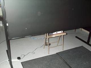 the screen (about 2 feet above the floor), tilted up at a 25 degree angle.