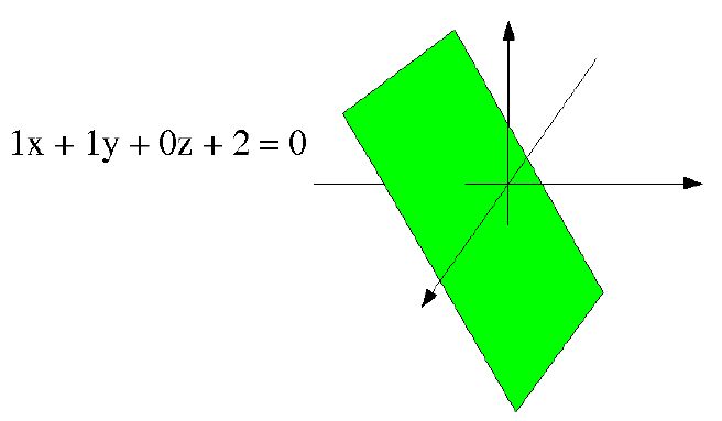 However, the value of NAx + NBy + NCz + ND will be N times the value of Ax + By + Cz + D. This is useful in texture coordinate generation.