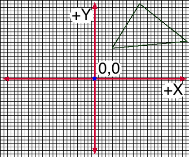 - +X right, +Y down