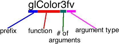 - glColor3f - 3 floating point arguments